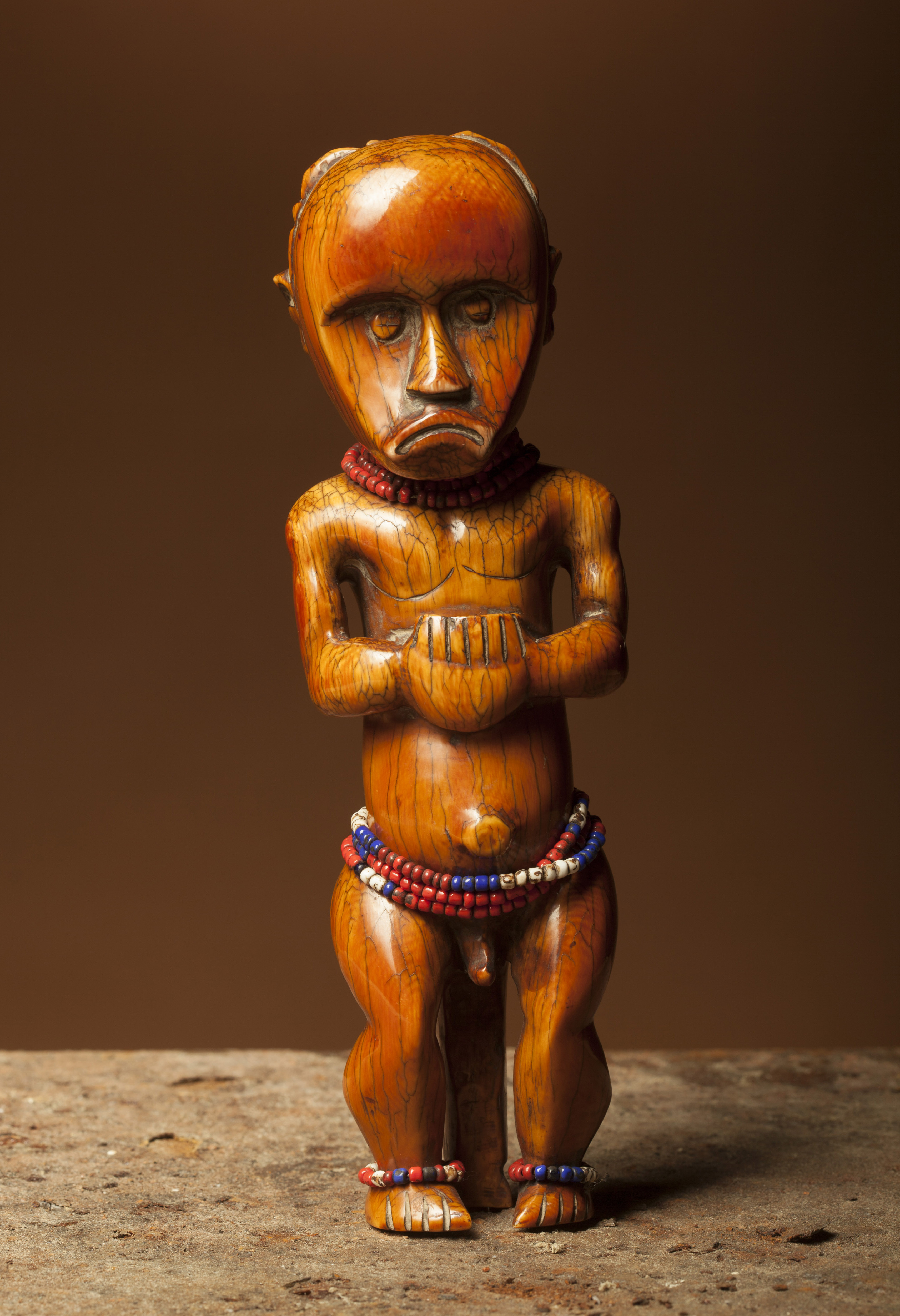 ce sont surtout des pièces de prestige, comme la plupart des ivoires africains.La statue a le front fort dégagé,elle a une face concave avec une bouche protubérante, un nombril,Elle porte des vieilles petites perles (rouge,blanc,bleu)autour du cou et autour des hanches.début du 20eme sc.(Nafaya)